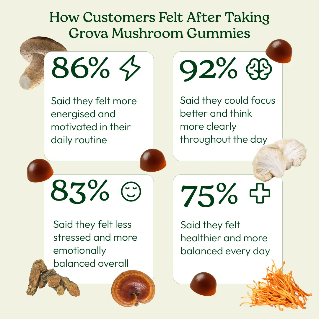 Yes! Grova Mushroom Gummies are 100% vegan, gluten-free, and made with high-quality ingredients, ensuring they fit into various dietary preferences and lifestyles.