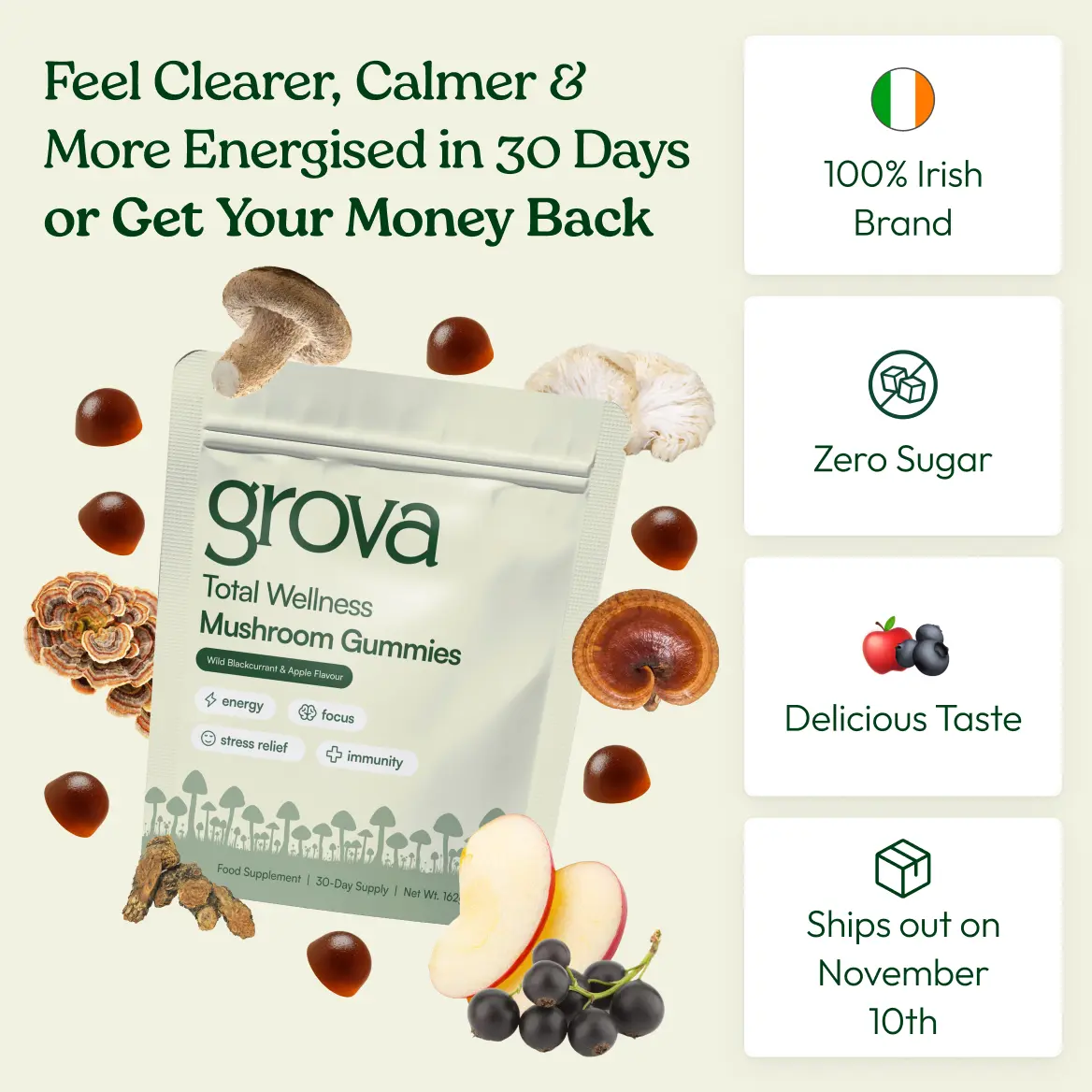 We’re confident you’ll feel the results of Grova's Total Wellness Mushroom Gummies, but if you don’t notice any changes after 30 days of consistent use, we'll send you a full refund.